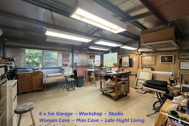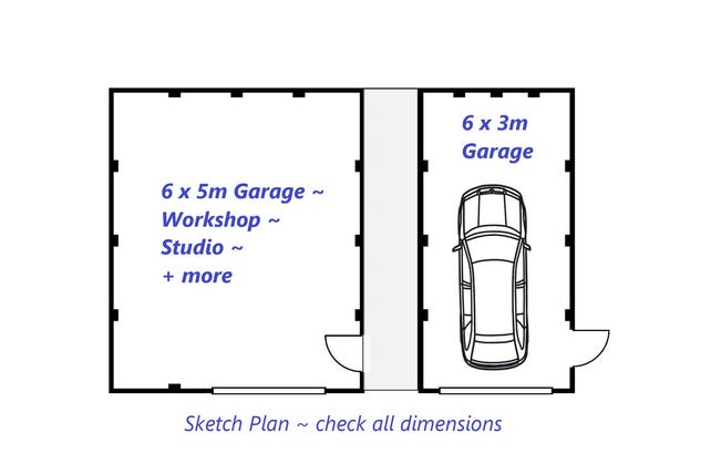 The larger 6 x 5m garage is currently set up as a Studio, ideal as a second living space or personal retreat.